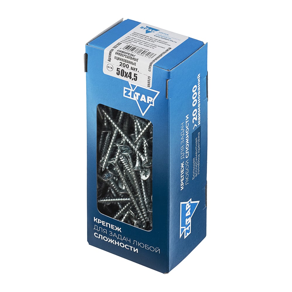 Универсальный саморез Zitar 50х4,5 мм 200 шт оцинкованный, коробка с окном 102193