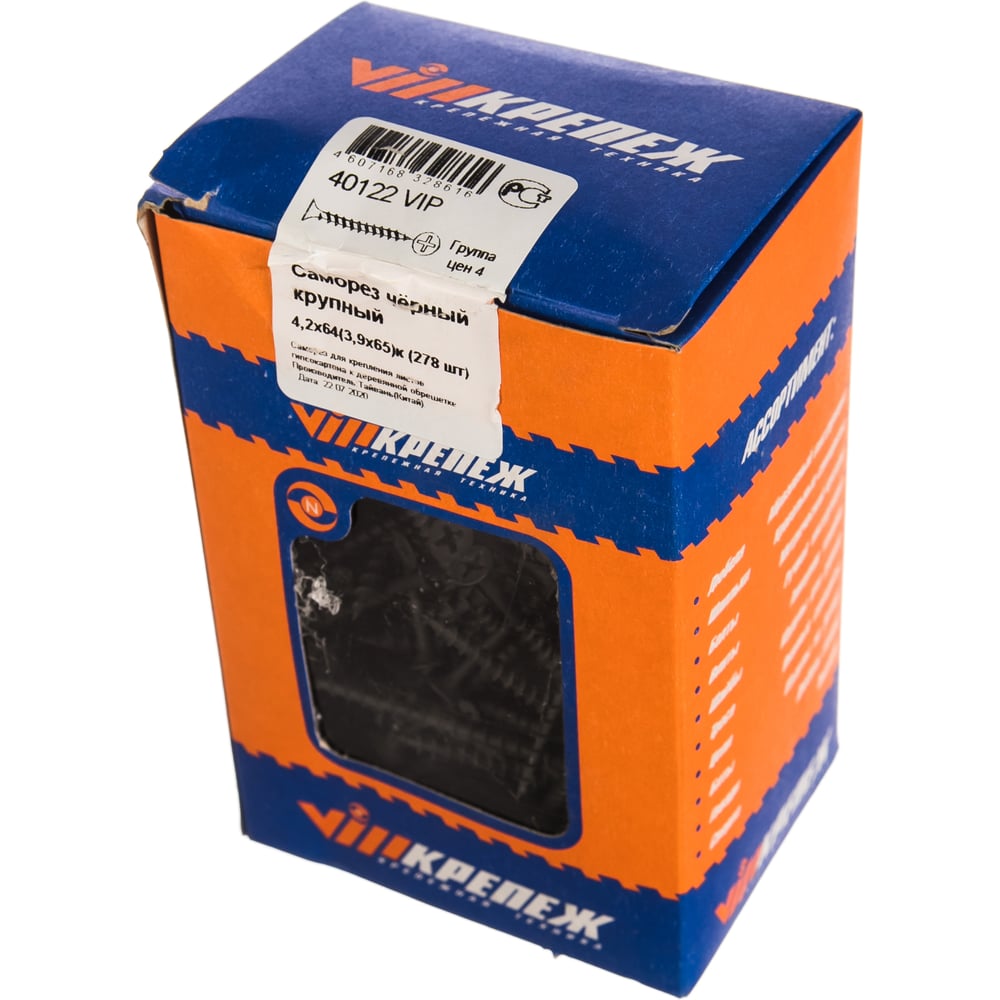 Саморез по дереву VIPКрепеж черный 4,2х64 к 278 шт 40122 VIP