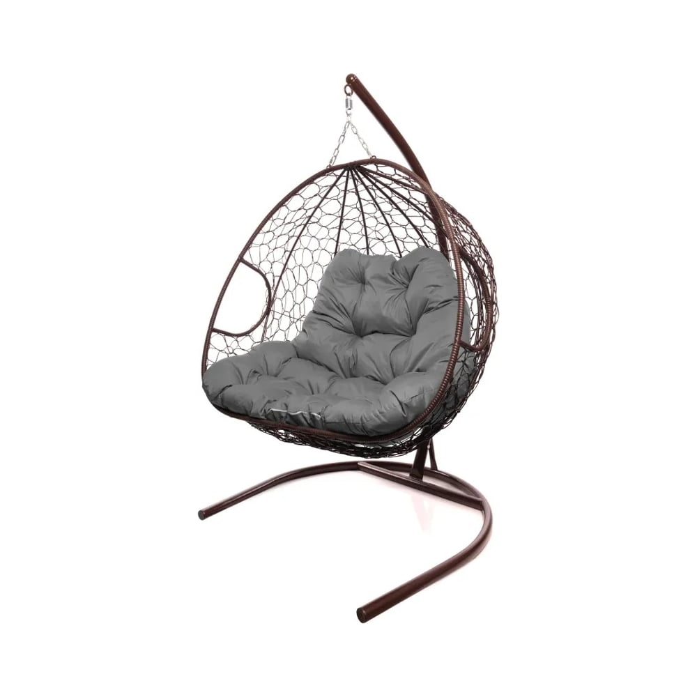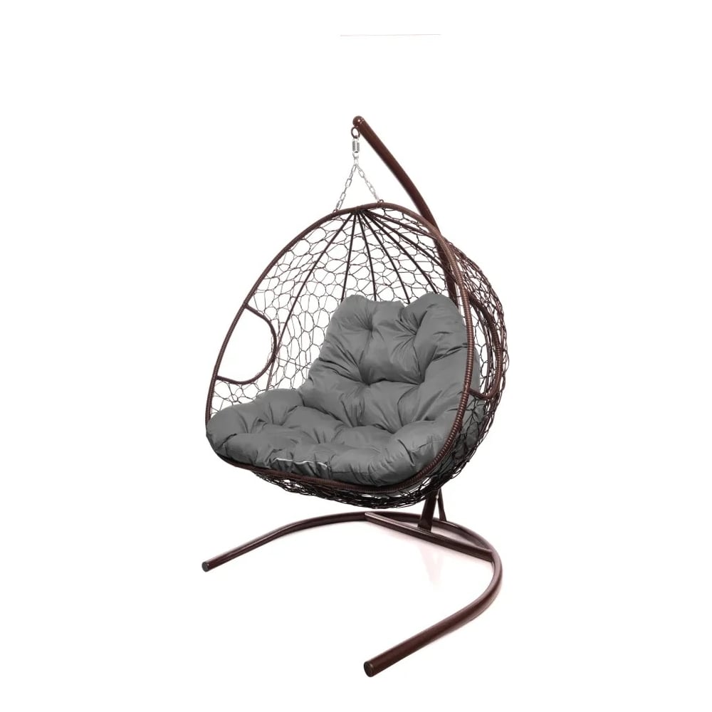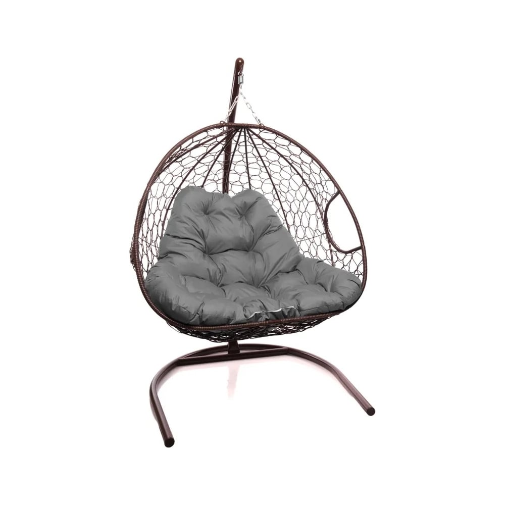Подвесное кресло M-GROUP ДЛЯ ДВОИХ с ротангом коричневое, серая подушка 11450209