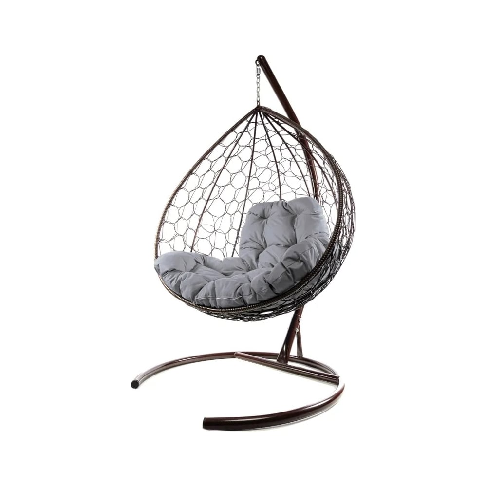Подвесное кресло M-GROUP XL с ротангом коричневое, серая подушка 11120209