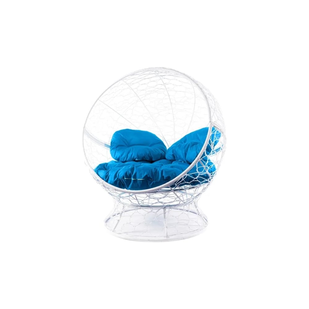 Кресло M-GROUP АПЕЛЬСИН с ротангом белое, синяя подушка 11520110