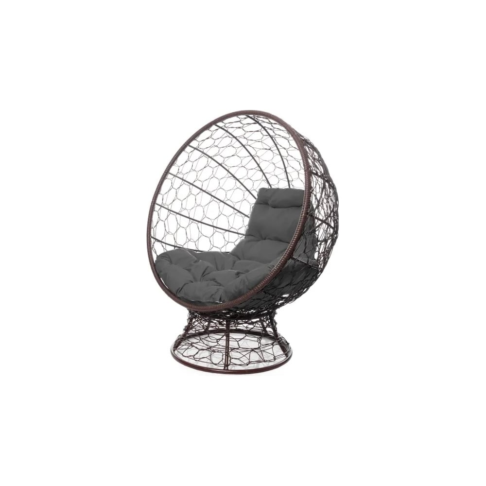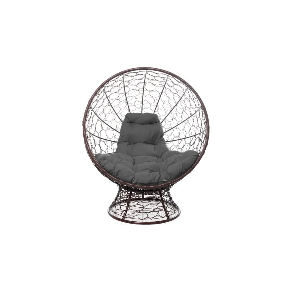 Кресло M-GROUP КОКОС на подставке с ротангом коричневое, серая подушка 11590209