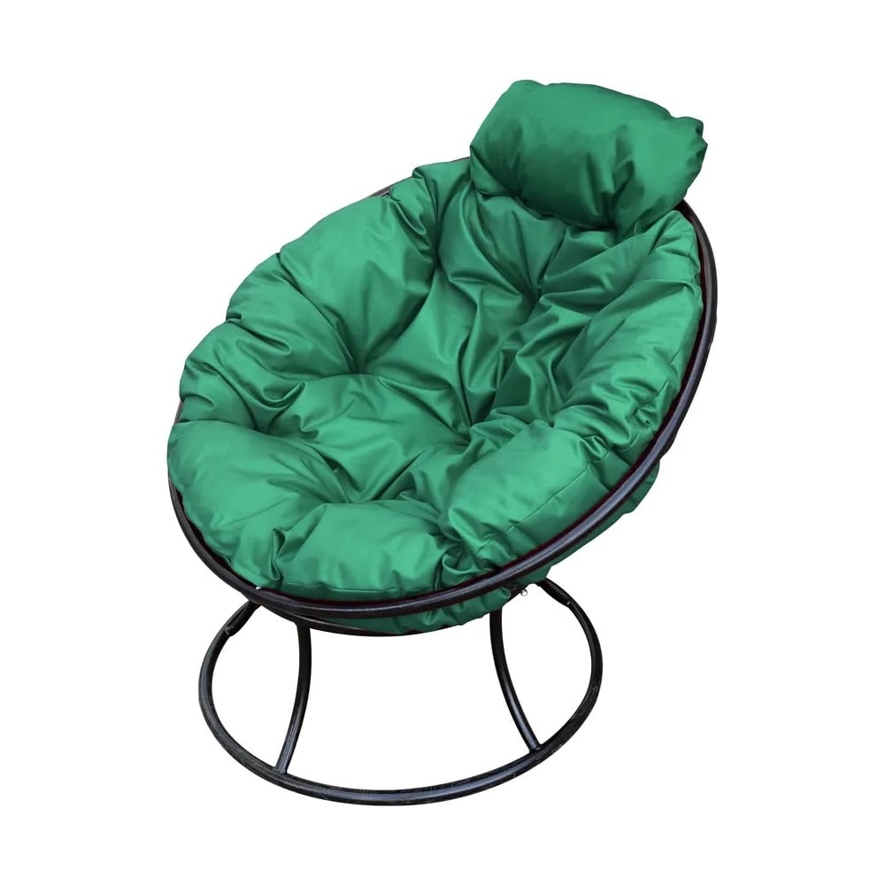 Кресло M-GROUP ПАПАСАН мини без ротанга чёрное, зелёная подушка 12060404