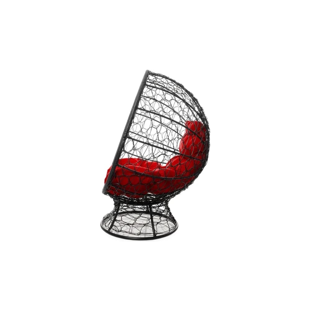 Кресло M-GROUP КОКОС на подставке с ротангом чёрное, красная подушка 11590406