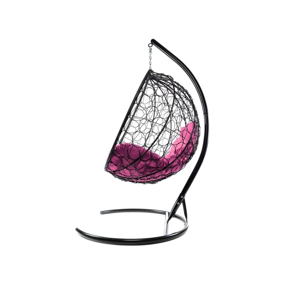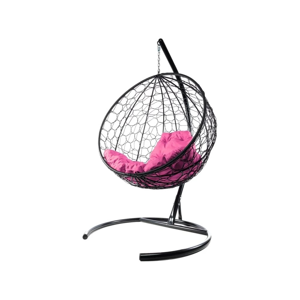Подвесное кресло M-GROUP КРУГ с ротангом чёрное, розовая подушка 11050408