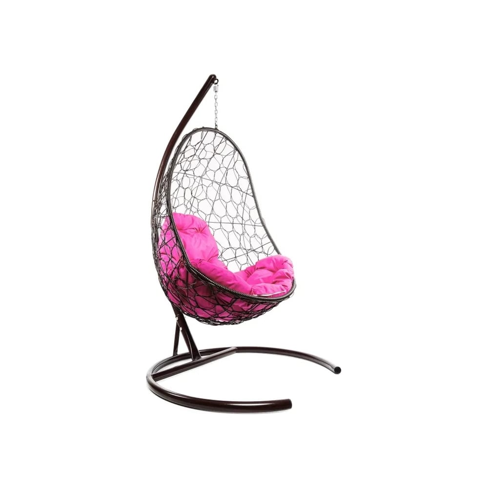 Подвесное кресло M-GROUP ОВАЛ с ротангом коричневое, розовая подушка 11140208