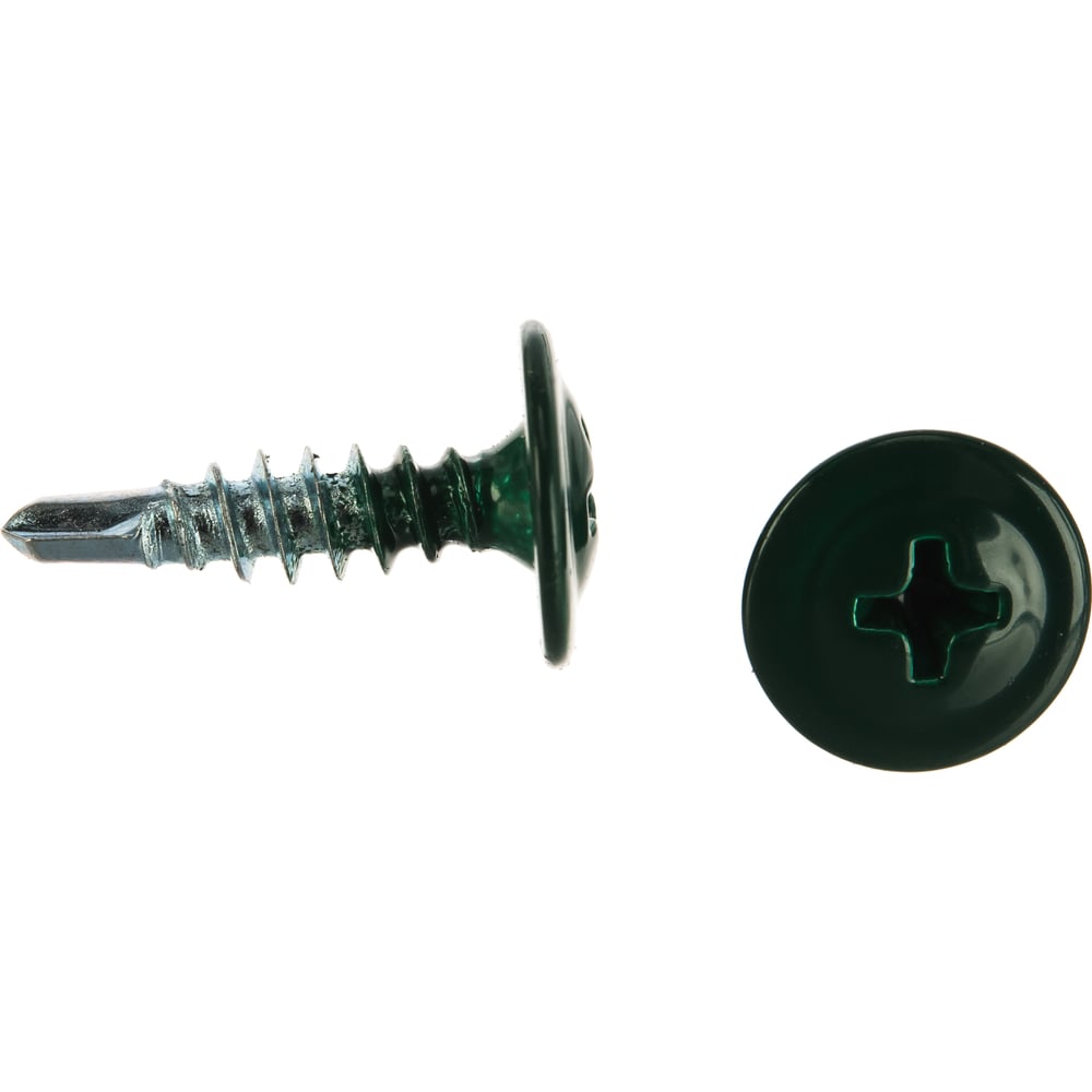 Саморез с прессшайбой и сверлом качественный крепеж 4,2/16 RAL6005 зеленый мох (250 шт.) 0300211
