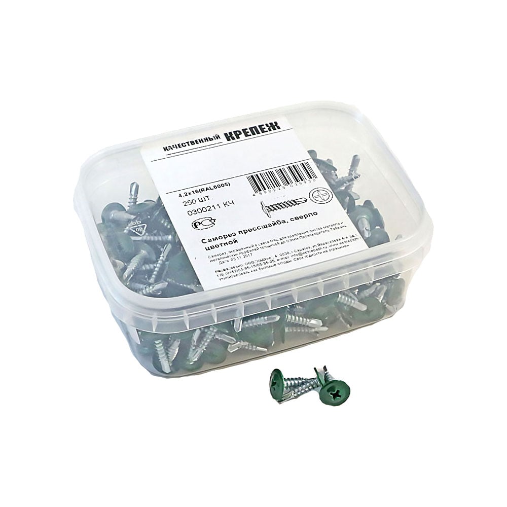 Прессшайба Качественный КРЕПЕЖ 4.2х16 мм, зеленый мох RAL 6005, сверло, 250 шт 0300211 КЧ