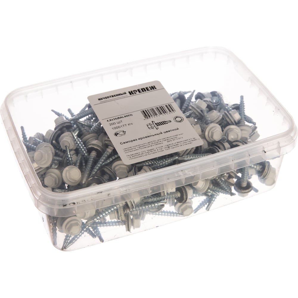Кровельный саморез Качественный КРЕПЕЖ белый RAL 9003, 4.8х35 мм, 200 шт 1000177 КЧ