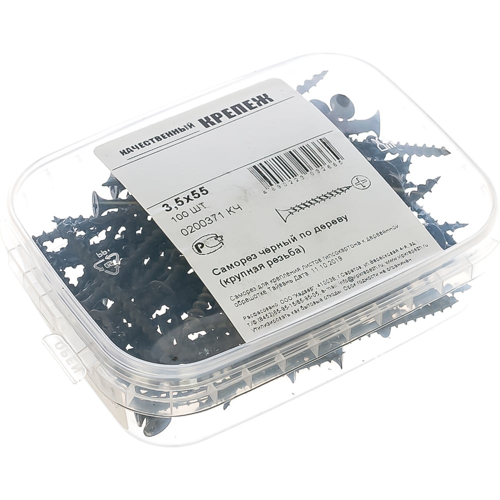 Саморез Качественный Крепеж 3,5х55 потай, крупная резьба, оксид 100 шт 0200371 КЧ