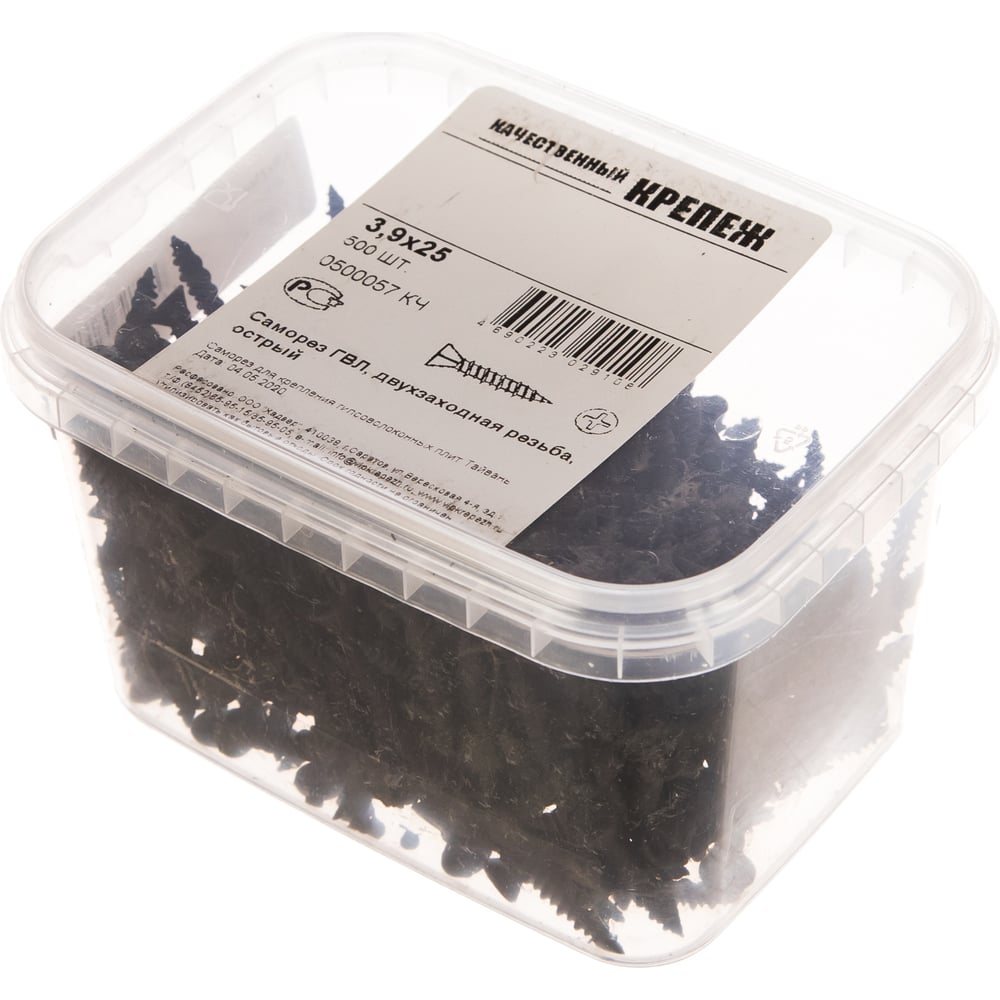 Саморез ГВЛ Качественный Крепеж 3,9х25 двухзаходная резьба 500 шт 0500057 КЧ