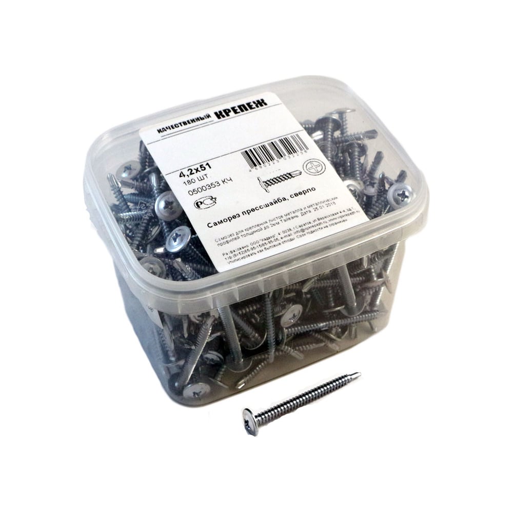 Саморез с прессшайбой Качественный крепеж 4,2х51 сверло 180 шт 0500353 КЧ