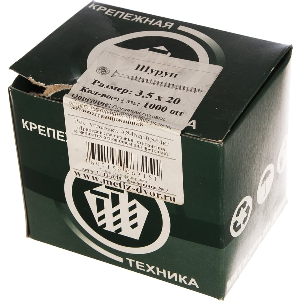 Универсальный потайной шуруп МЕТИЗНЫЙ ДВОР 3,5x20 (1000 шт.) 4607159063151