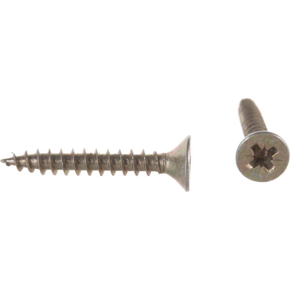 Длина 30 мм Тип фасовки шт. Материал сталь Покрытие желтопассивированный Диаметр 4.5 мм Наличие пресс-шайбы нет Нержавеющая сталь нет Цвет покрытия желтый цинк Форма головки потайная Размер шлица PZ2 Шлиц Pozidriv (PZ) Наконечник острый Фасовка 18 шт