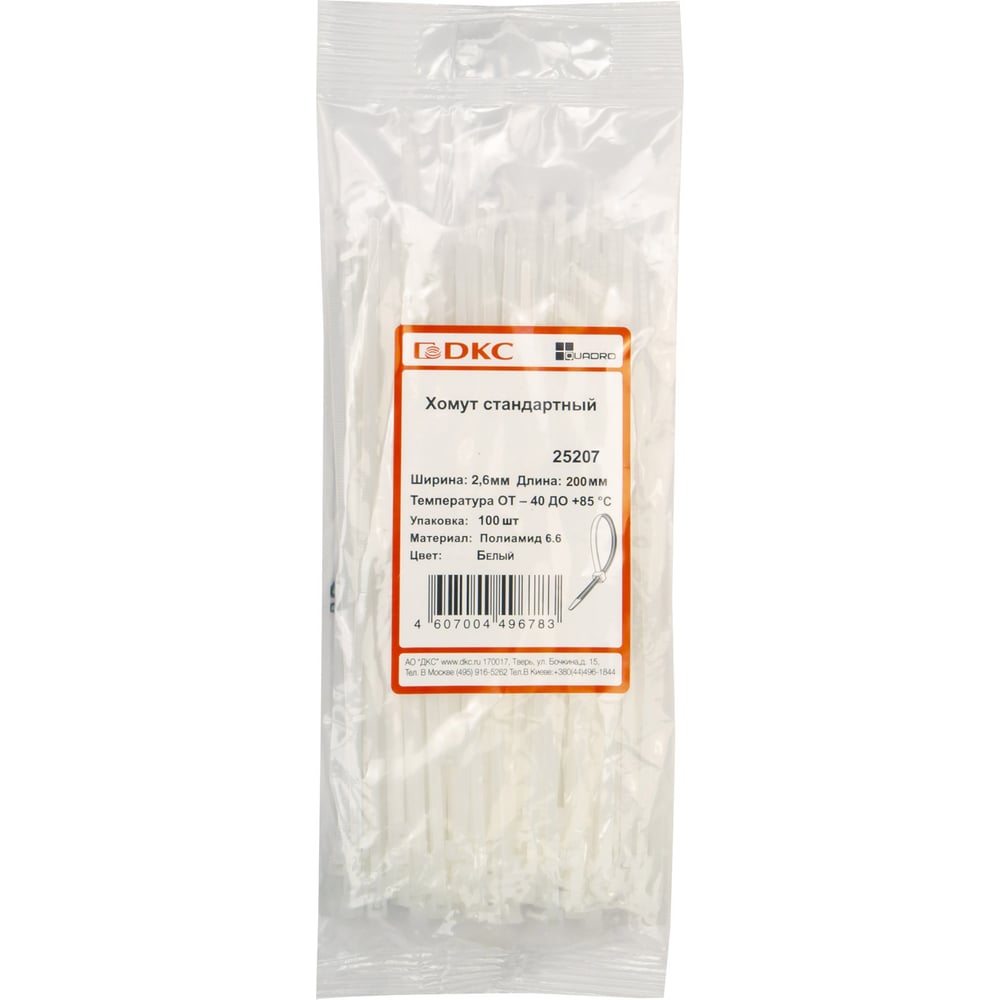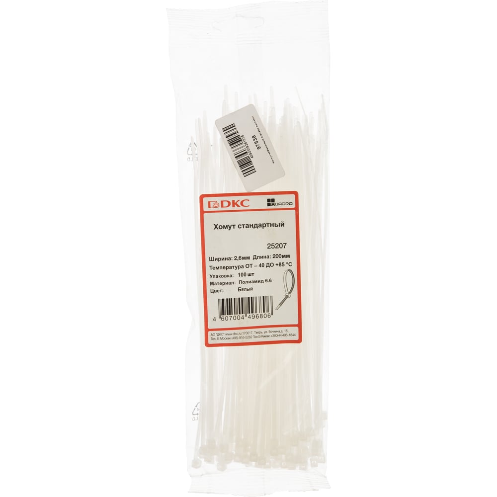 Нейлоновый хомут DKC 2.5х200 белый, 100 шт. 25207SR