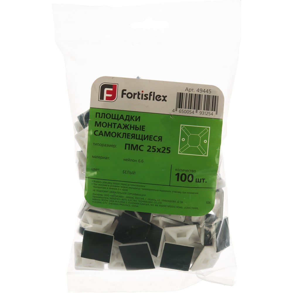 Монтажные самоклеящиеся площадки FORTISFLEX ПМС 25х25 белый 100шт 49445