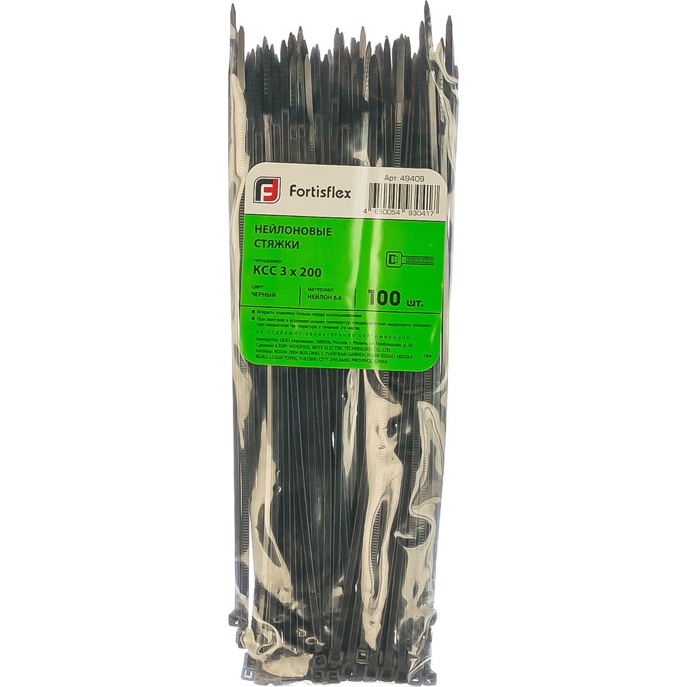 Нейлоновые стяжки FORTISFLEX КСС 3х200 мм черный 100 штук 49409