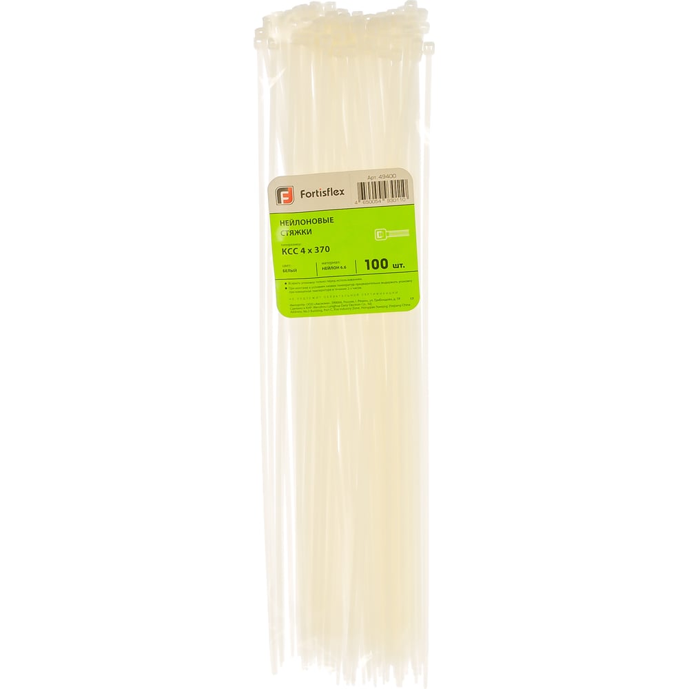 Нейлоновые стяжки FORTISFLEX КСС 4х370 мм белый 100 штук 49400