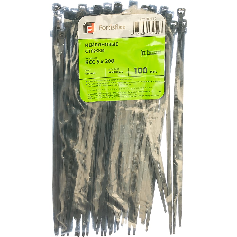 Нейлоновые стяжки FORTISFLEX КСС 5х200 мм черный 100 штук 49415