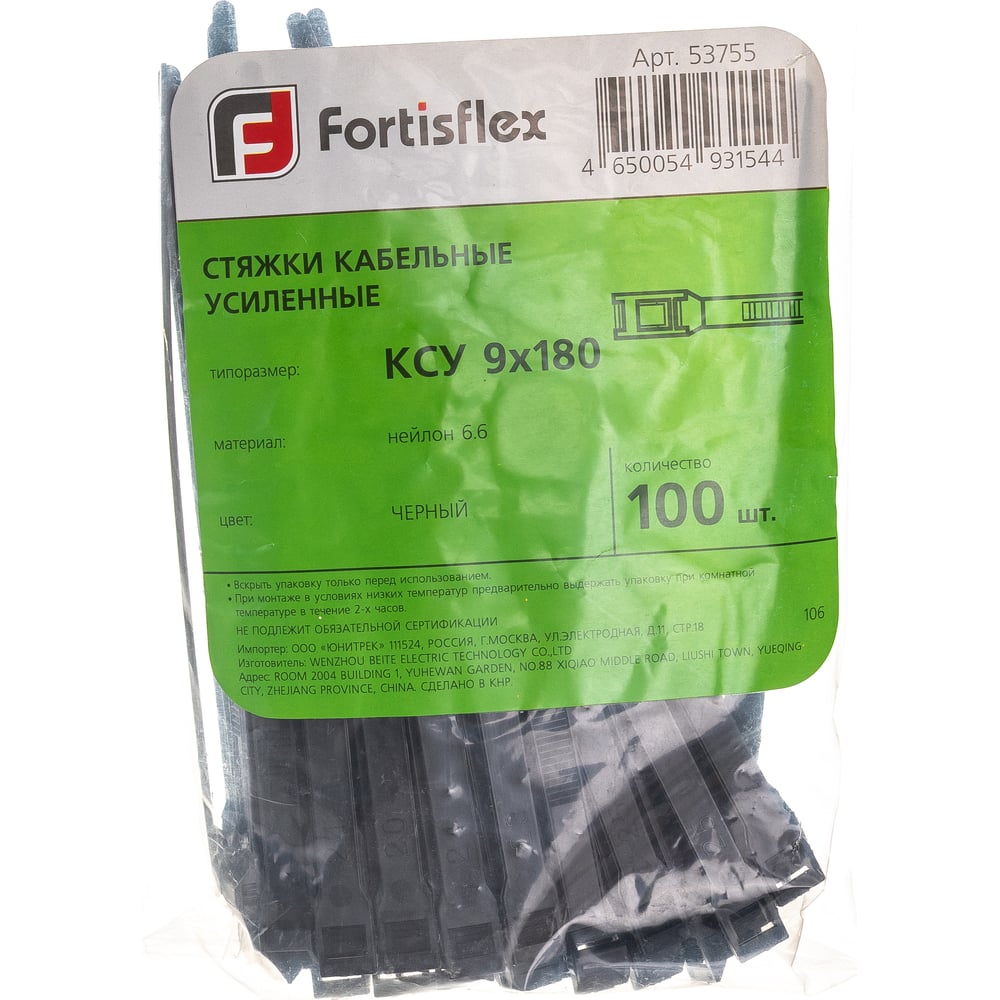 Полиамидные стяжки FORTISFLEX КСУ 9х180 черный 100 штук 53755