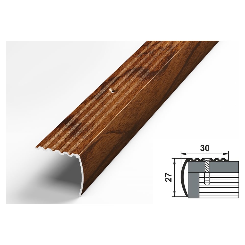 Порог угловой алюминиевый (30х27 мм; 0.9 м; декоративный; мербау) Лука 00000001452