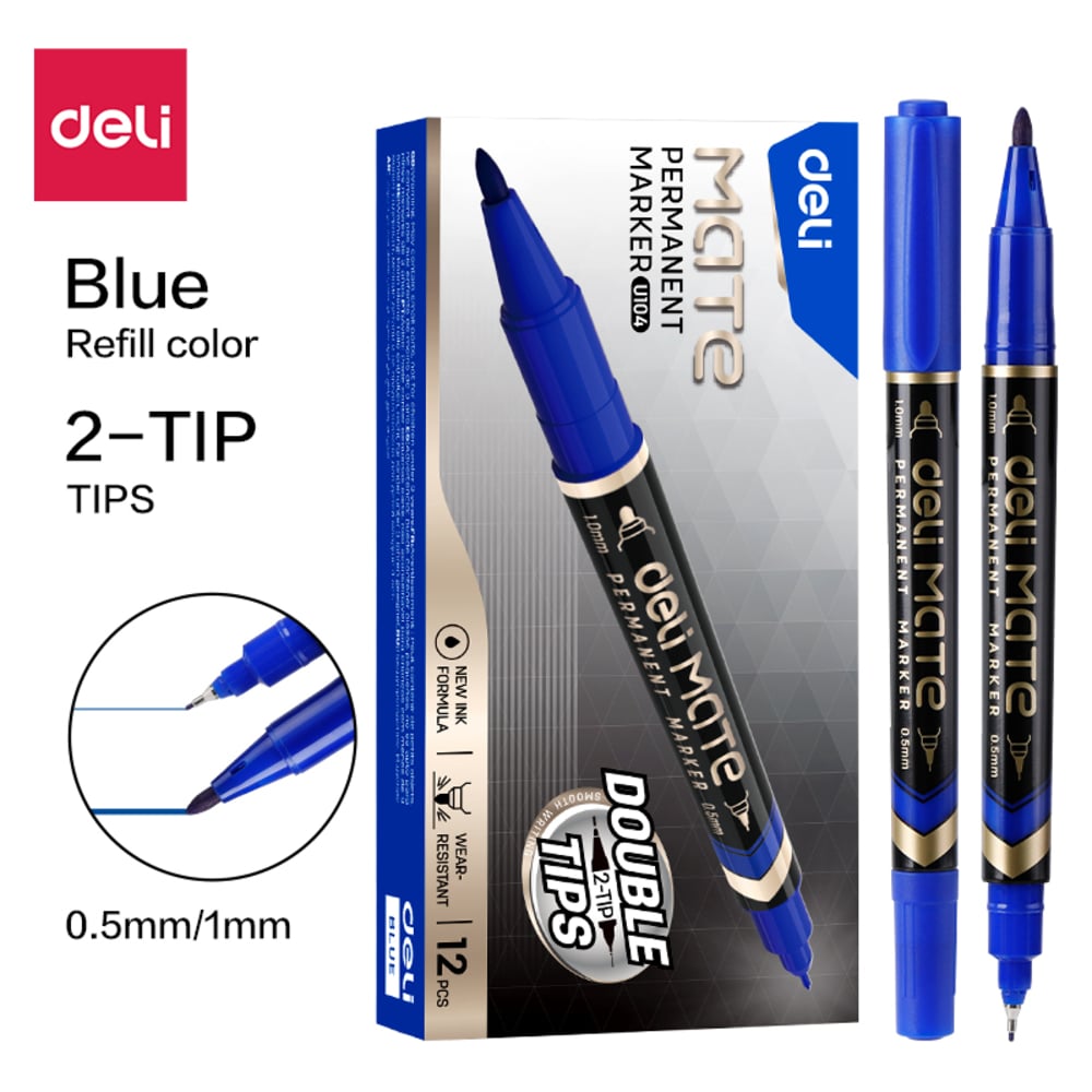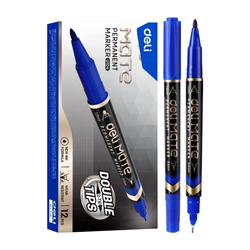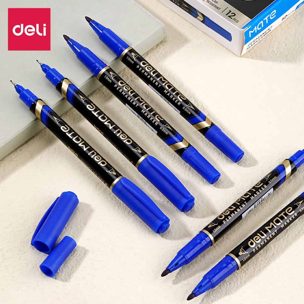 Маркер DELI перманентный Mate двойной пиш. наконечник 0.5-1мм синий EU10430