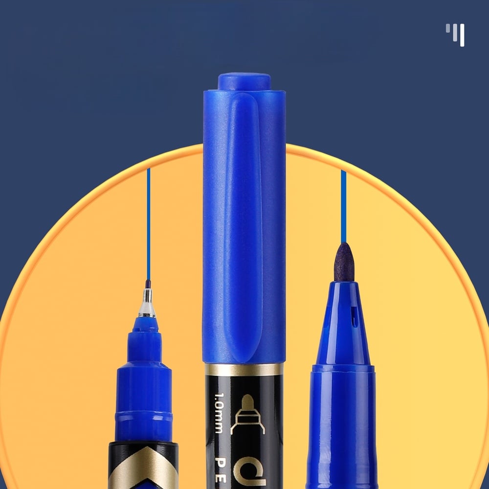 Габариты без упаковки 160x15 мм Материал корпуса пластик Водостойкие чернила да Быстросохнущие чернила да Двухсторонний да Диаметр корпуса 15 мм Количество в наборе 1 шт Форма корпуса круглая Цвет чернил синий Палитра синий Толщина линии письма 0.5 - 1 мм Основа чернил спиртовая Перманентный есть Лаковый нет Мах толщина линии письма 1 мм