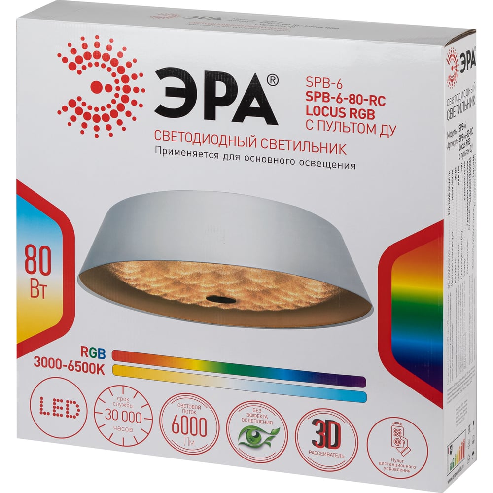 Потолочный светодиодный светильник ЭРА SPB-6-80-RC Locus RGB 80Вт RGB 3000-6500 с ДУ, Б0053316