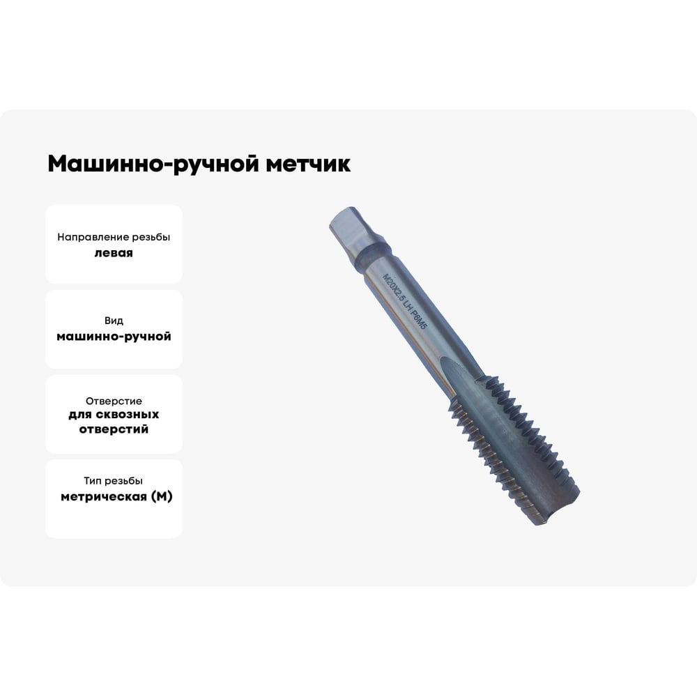 Машинно-ручной метчик TORNERI М20х2.5 Р6М5, для сквозных отверстий, левый 038268