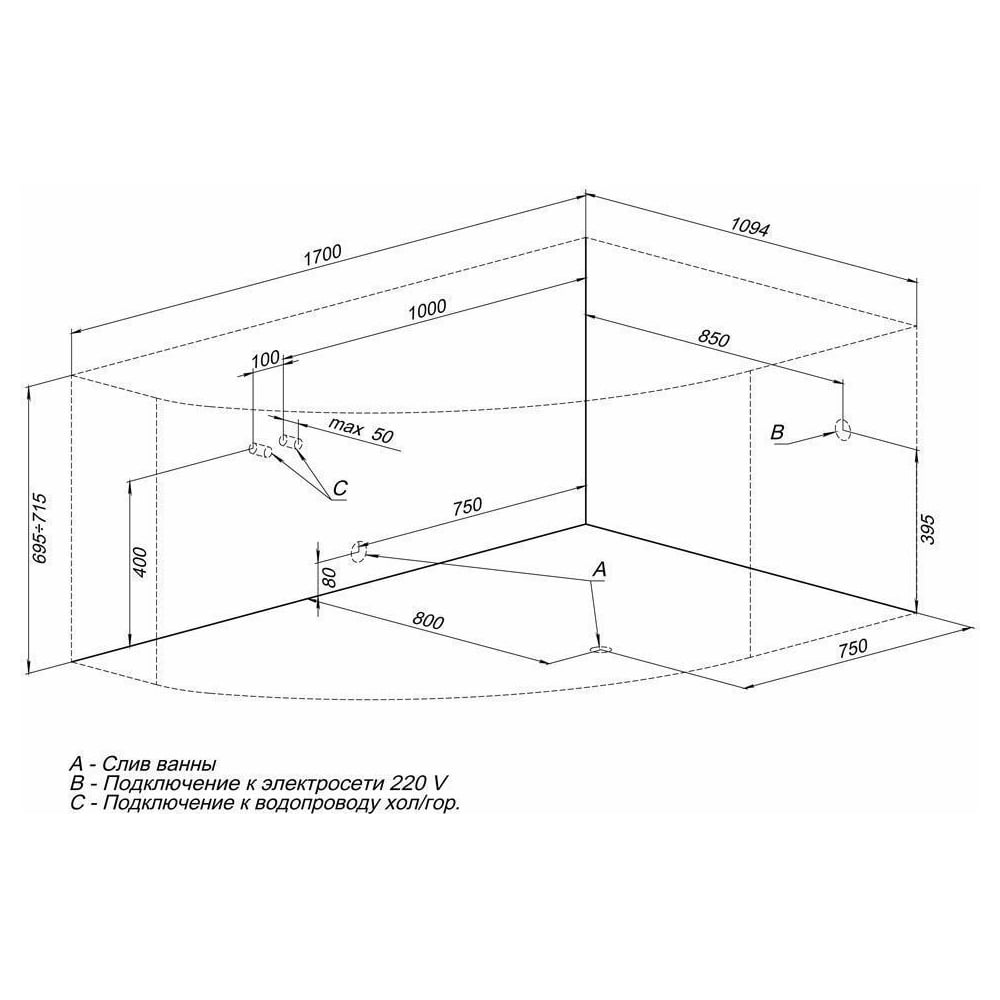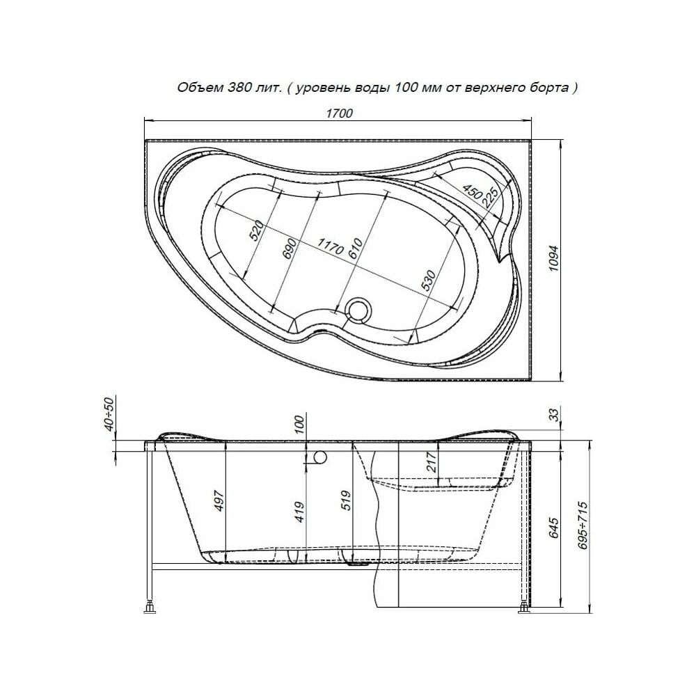 Акриловая ванна Aquanet Capri 170x110 R 00203922