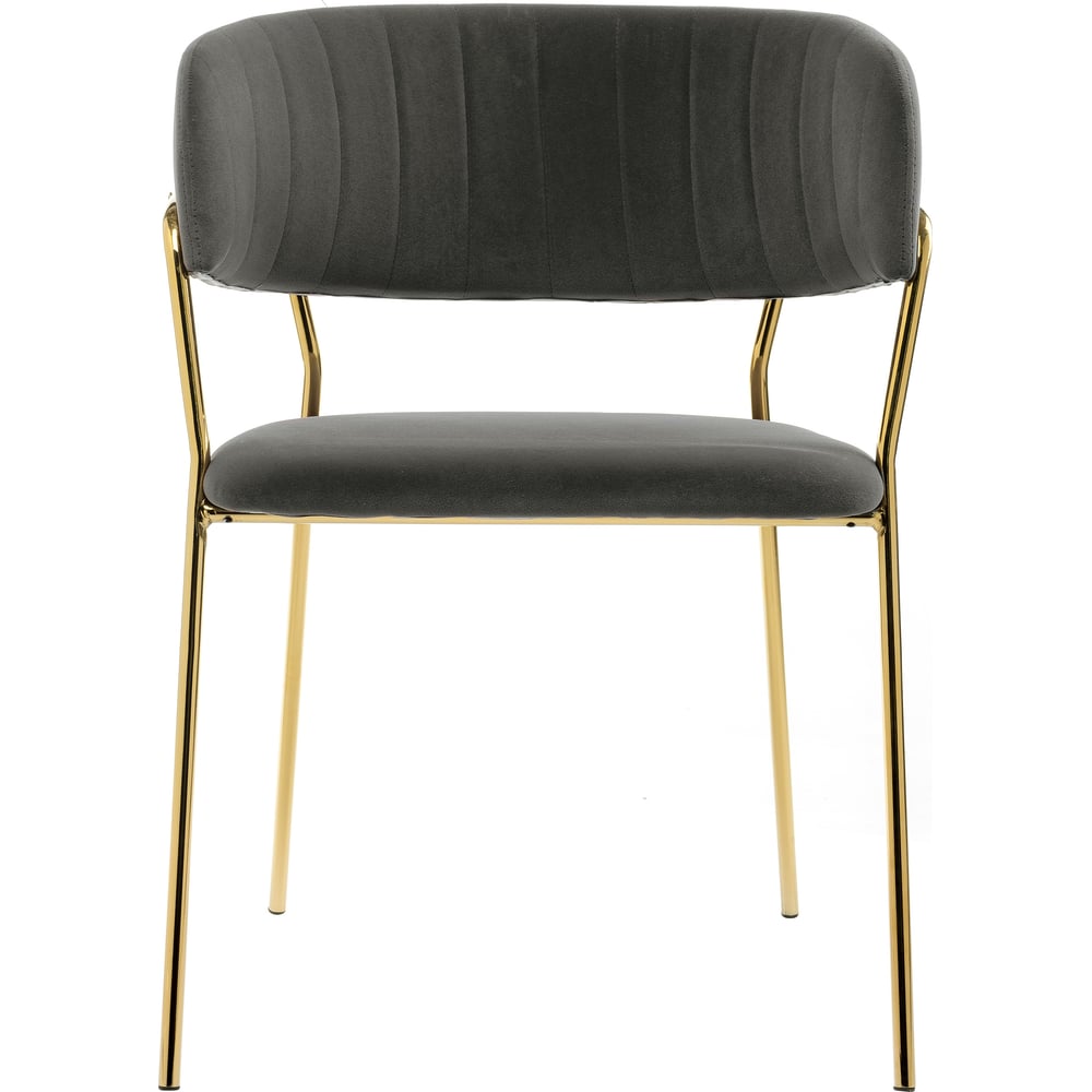 Габариты без упаковки 540х570х830 мм Ширина 570 мм Вес нетто 6.5 кг Подлокотники нет Max нагрузка 100 кг Вращающийся нет Палитра серый Высота сиденья 460 мм Материал каркаса металл Материал сиденья велюр Тип опоры ножки Высота стула 830 мм Цвет обивки темно-серый Цвет каркаса золотой Количество в комплекте 1 Спинка сквозная Форма сиденья круглая Регулируемые нет Каретная стяжка нет Качающийся нет Форма спинки фигурная Материал спинки велюр Антивандальные нет Раскладные нет Съемные чехлы нет