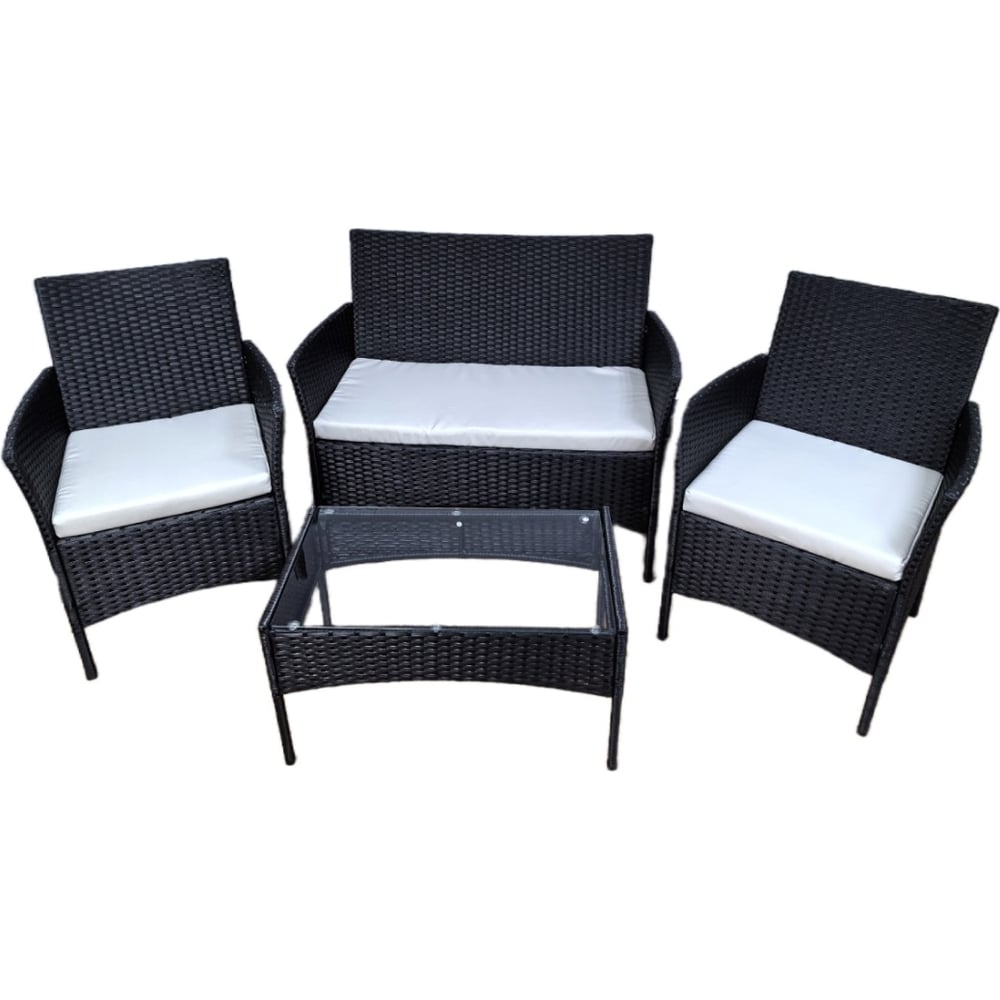 Вес нетто 23.7 кг Материал корпуса полипропилен Цвет корпуса темно-серый Назначение для дачи и сада Количество предметов 4 Max нагрузка 25 кг Материал обивки полиэстер Форма столешницы квадрат Материал столешницы закаленное стекло Складная конструкция нет Водонепроницаемость да Высота стола 380 мм Мягкое сиденье да Цвет обивки белый Состав комплекта стол, диван, кресла