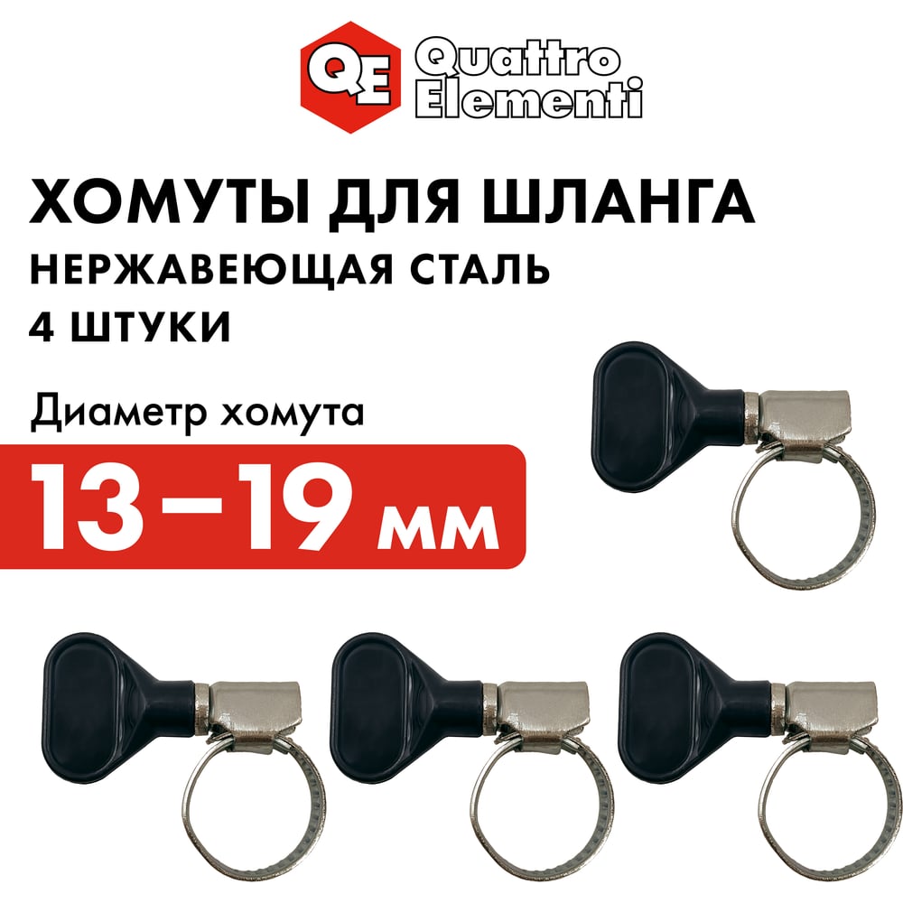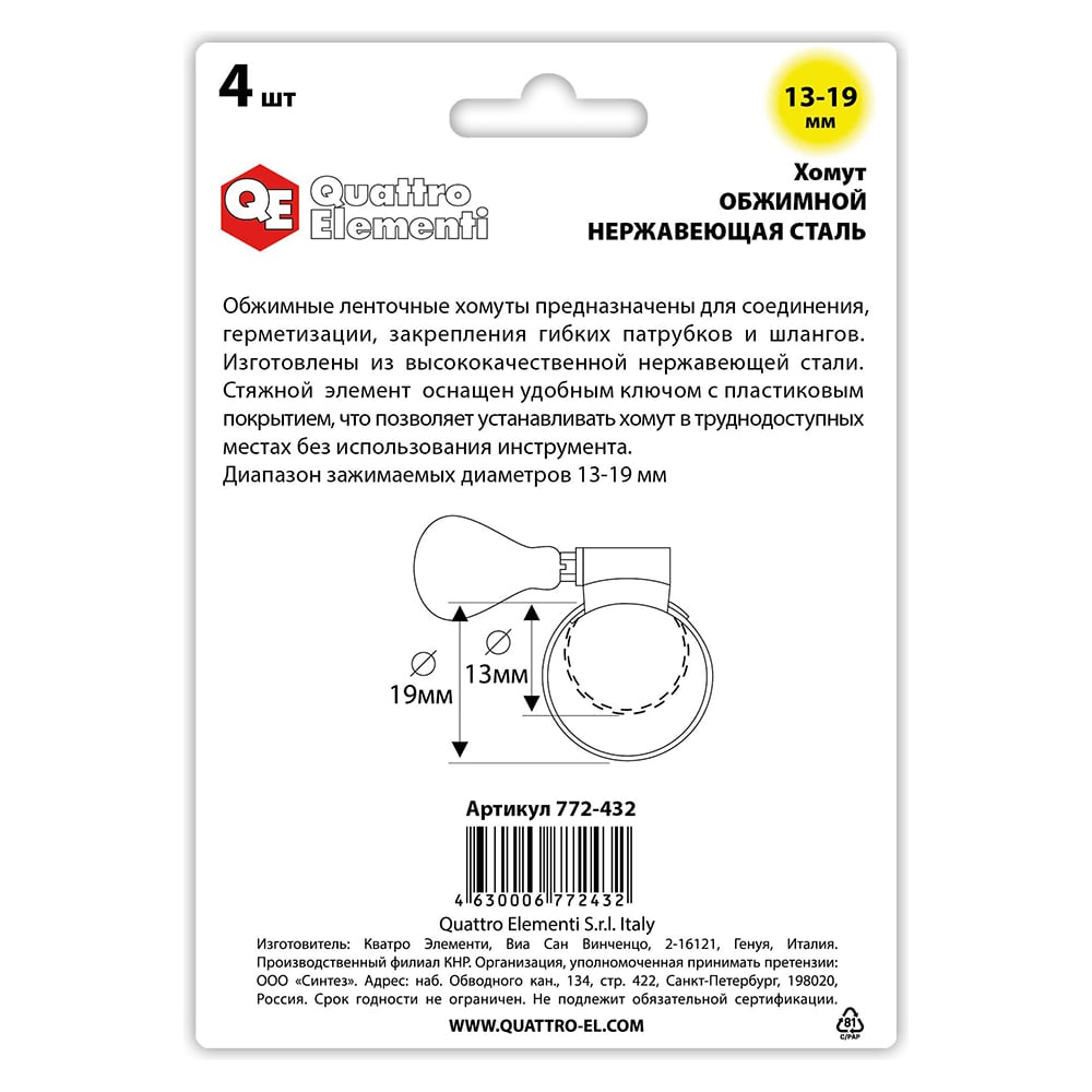 Обжимной хомут QUATTRO ELEMENTI 13-19 мм, нержавеющая сталь, с ключом, 4 шт в блистере 772-432