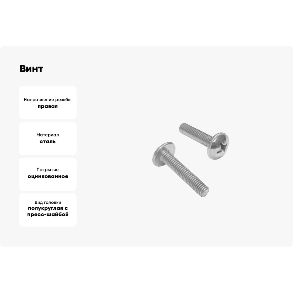 | Вид головки | полукруглая с пресс-шайбой |