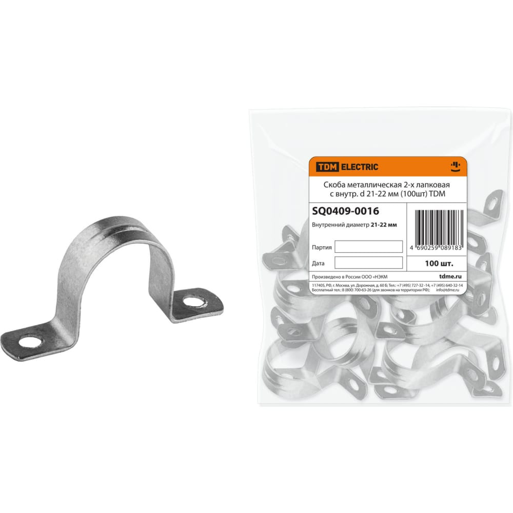 Tdm скоба металлическая 2-х лапковая с внутр. d 21-22 мм 100шт sq0409-0016