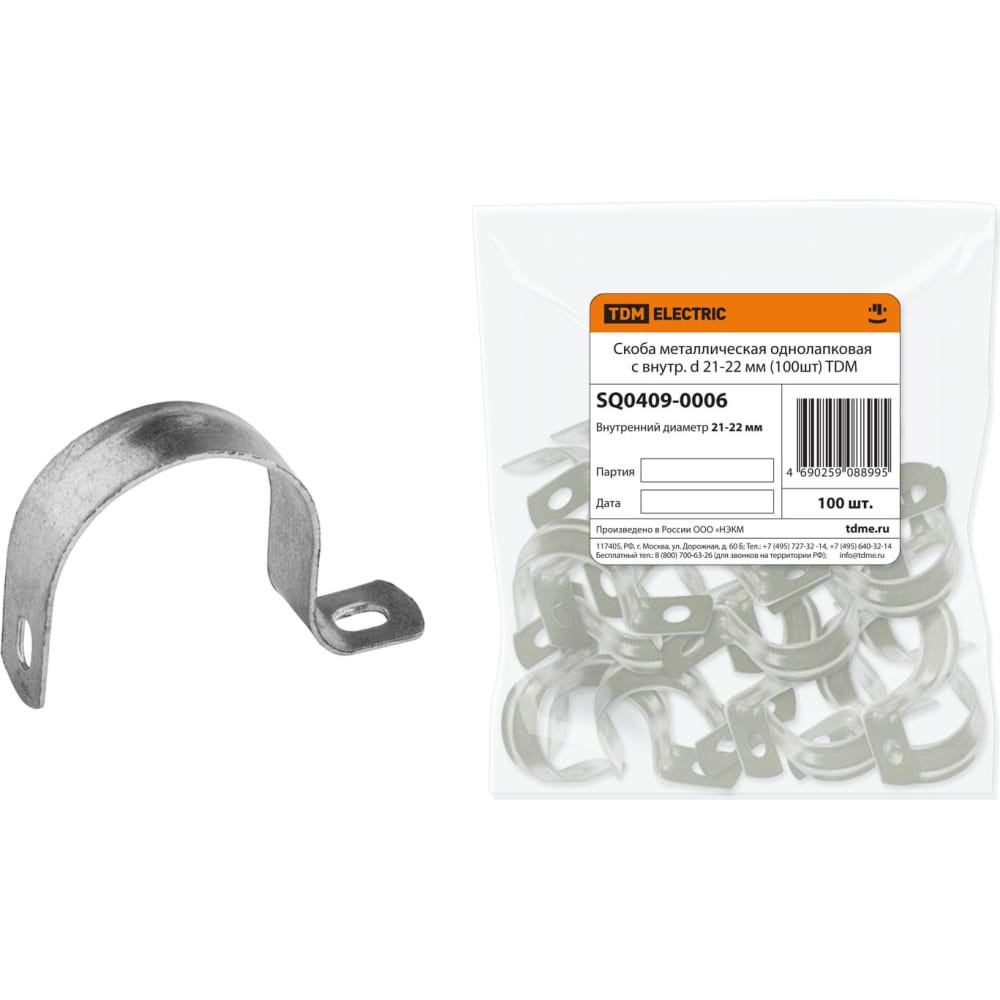 Tdm скоба металлическая однолапковая с внутр. d 21-22 мм 100шт sq0409-0006