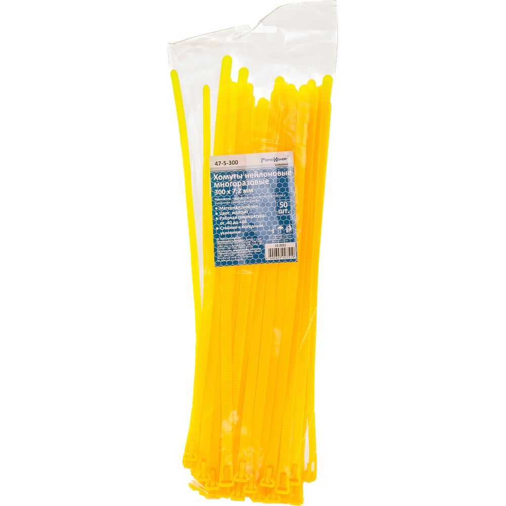 Нейлоновые хомуты РемоКолор желтые многоразовые 300 х 7,2 мм, 50 47-5-300