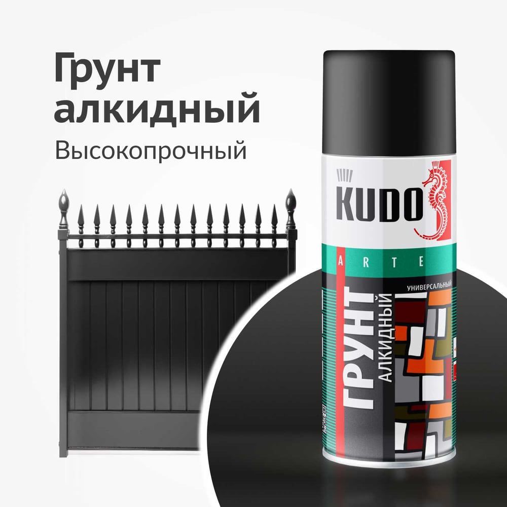 Грунтовка KUDO "Грунт алкидный универсальный" в баллончике, чёрный KU-2003