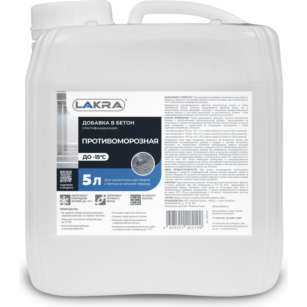 Лакра противоморозная добавка в бетон 5л 90005265635