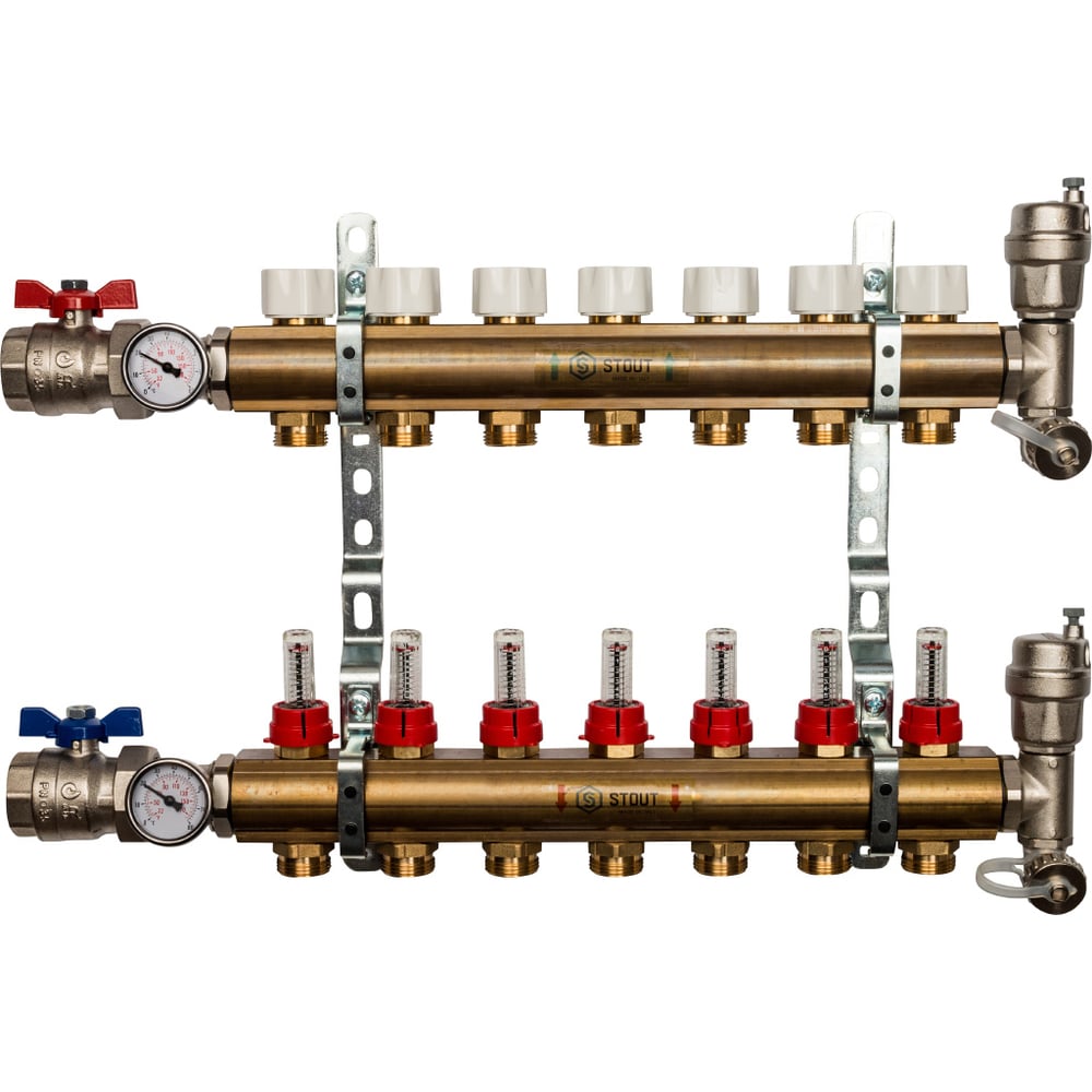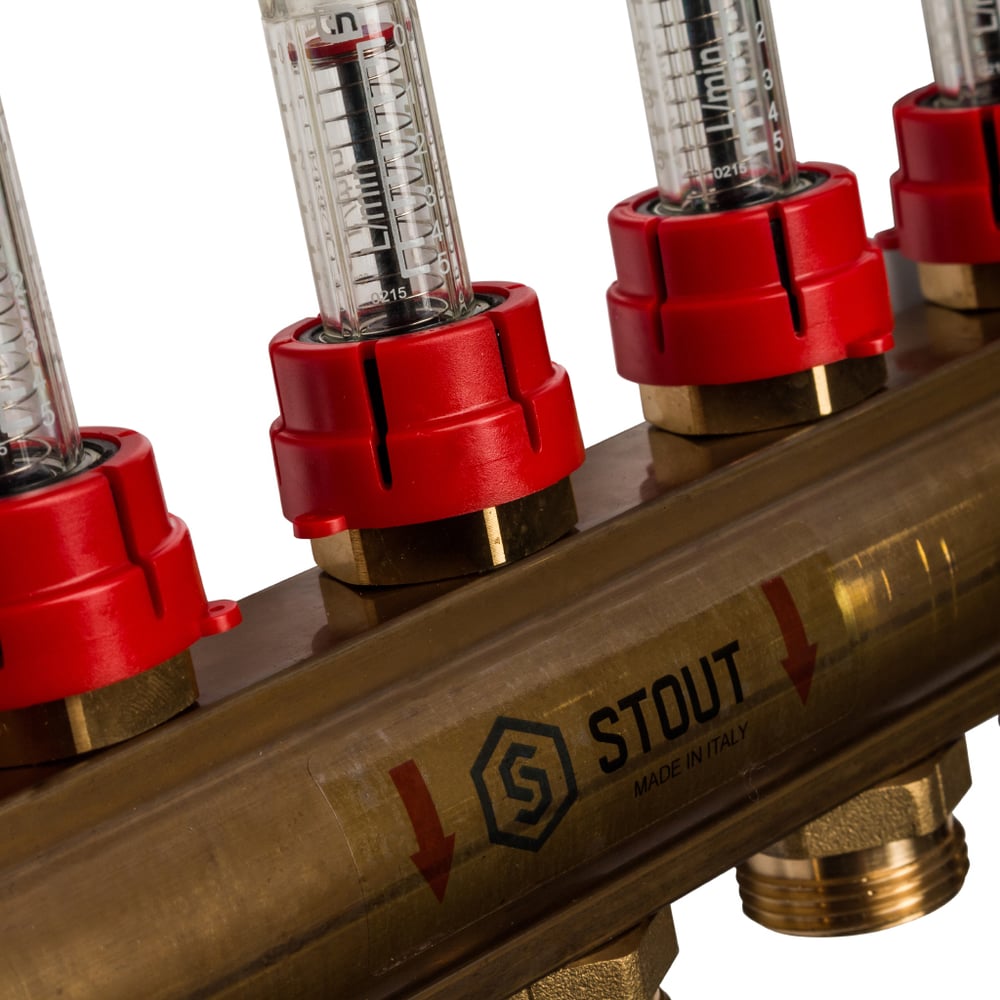 Распределительный коллектор из латуни с расходомерами 7 вых. STOUT SMB 0473 000007