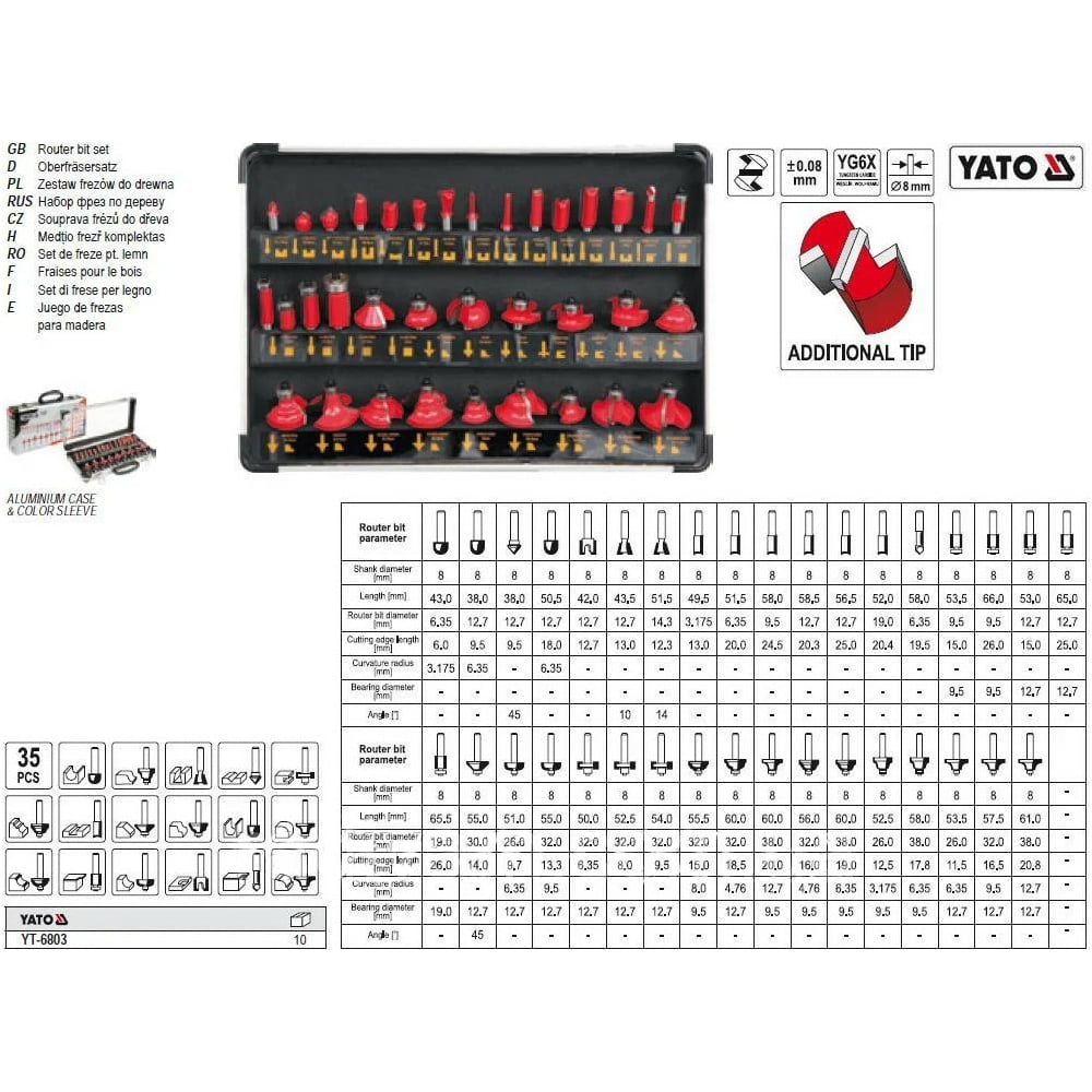 Набор фрез по дереву YATO YT-6803