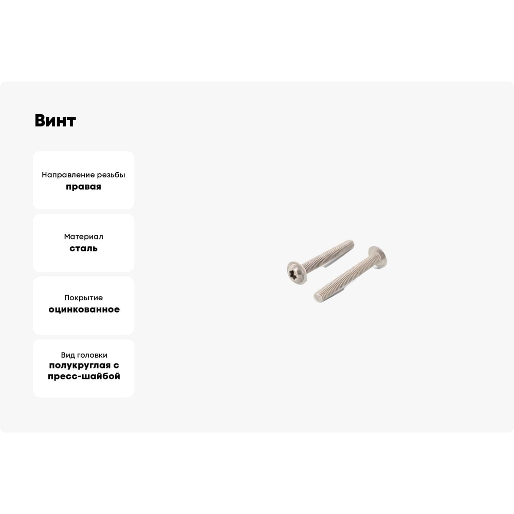 | Вид головки | полукруглая с пресс-шайбой |