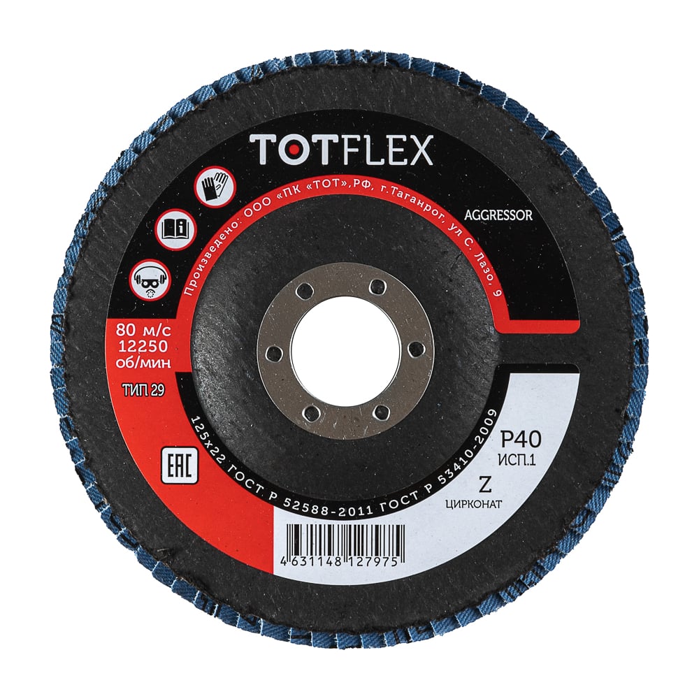 Круг лепестковый торцевой AGGRESSOR 1 (125x22 мм; Z; P40) TOTFlex 4631148127975