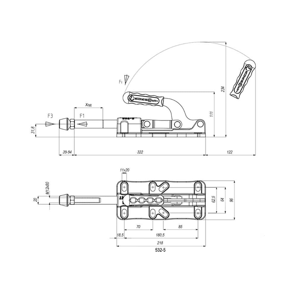 Плунжерный зажим KUKAMET с кронштейном до 79 кг 532-5-Q20