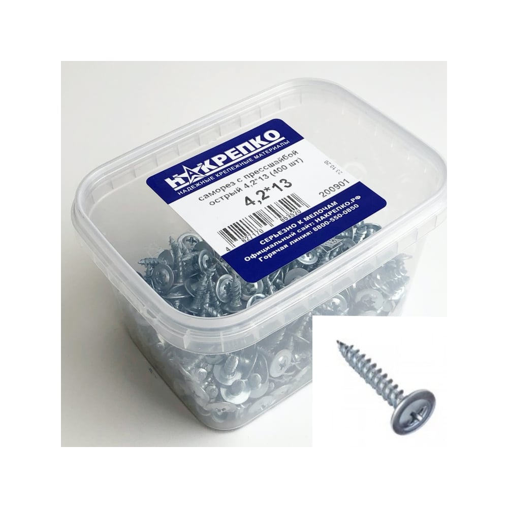 Саморез НАКРЕПКО с прессшайбой острый 4,2х13 2400 шт. 200901