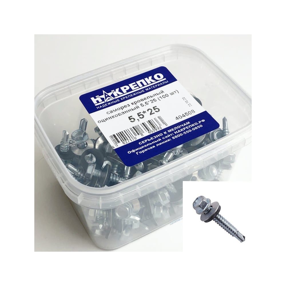Кровельный саморез НАКРЕПКО оцинкованный 5,5х25 100шт 404508