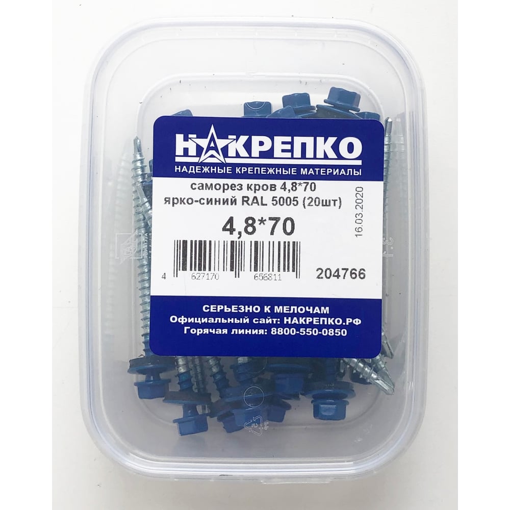 Кровельный саморез НАКРЕПКО 4,8х70 ярко-синий RAL 5005 20 шт. 204766