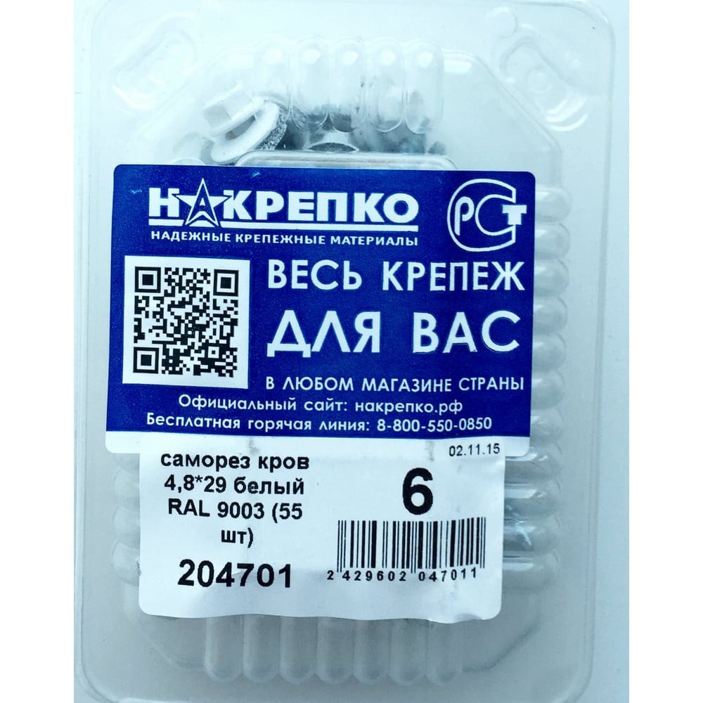 Кровельный саморез НАКРЕПКО 4,8х29 белый RAL 9003 55 шт. 204701