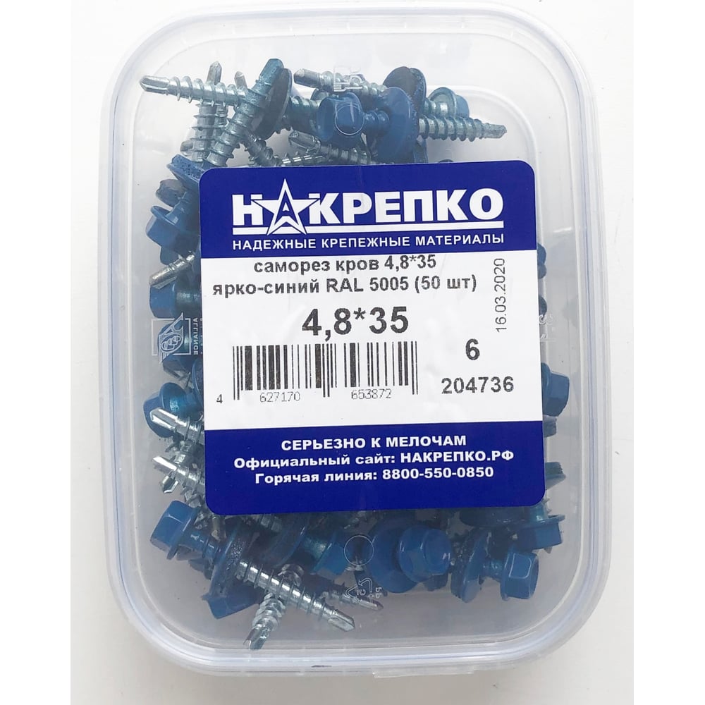 Кровельный саморез НАКРЕПКО 4,8х35 ярко-синий RAL 5005 50 шт. 204736