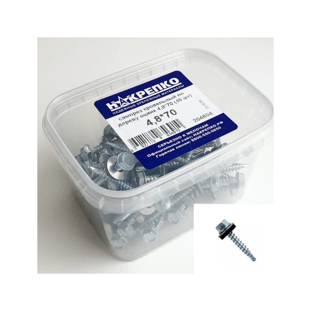 Оцинкованный кровельный саморез по дереву НАКРЕПКО 4,8х70 40 шт. 204604